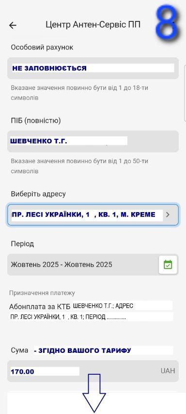 в ПГРПУ КБ Приватбанк м. Полтава МФО 305299 При оплаті за послуги просимо обов'язково в платіжних документах указувати адресу платника